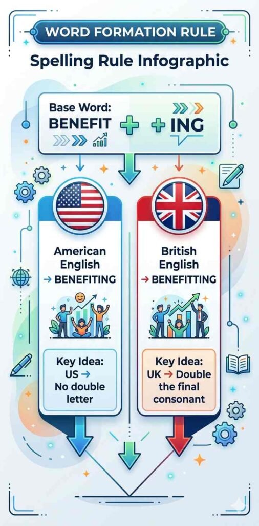 English spelling can sometimes feel confusing, especially when one word has two correct forms. One common example is benefitting vs benefiting. Many people are unsure which one to use and when.